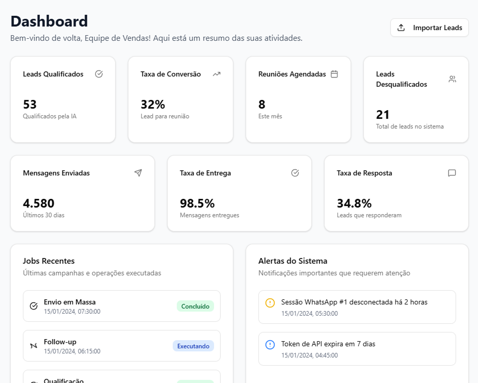Ele identifica leads qualificados, agenda reuniões e mantém prospects engajados por meio de interações inteligentes, automatizadas e personalizadas com IA. Mais velocidade, mais eficiência e mais conversões — sem aumentar seu time comercial.